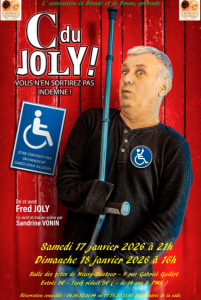 Samedi 17 janvier a 21h et dimanche 18 janvier a 16h salle des fêtes de Neuvy Sautour, spectacle Humoristique de et avec Fred Joly, entrée 8 euros, tarif réduit 5 euros pour les enfants et personnes a mobilité réduite. Organisation la blonde et la brune.
